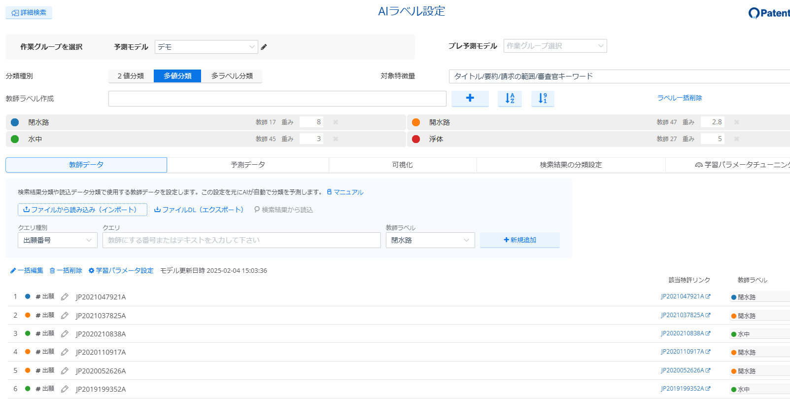 1.AI分類予測のAIラベル設定画面で、教師ラベルをセットします。