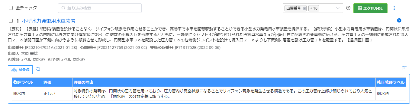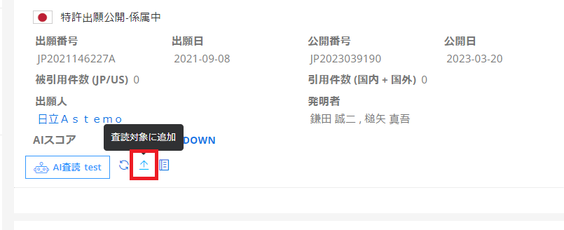 生成AIで査読したい各公報の「査読対象に追加」をクリックします。