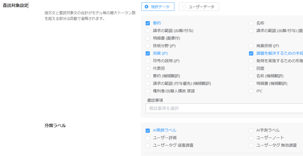 3.査読対象の「分類ラベル」項目で、「AI教師ラベル」にチェックをつけて、査読設定を保存してください。