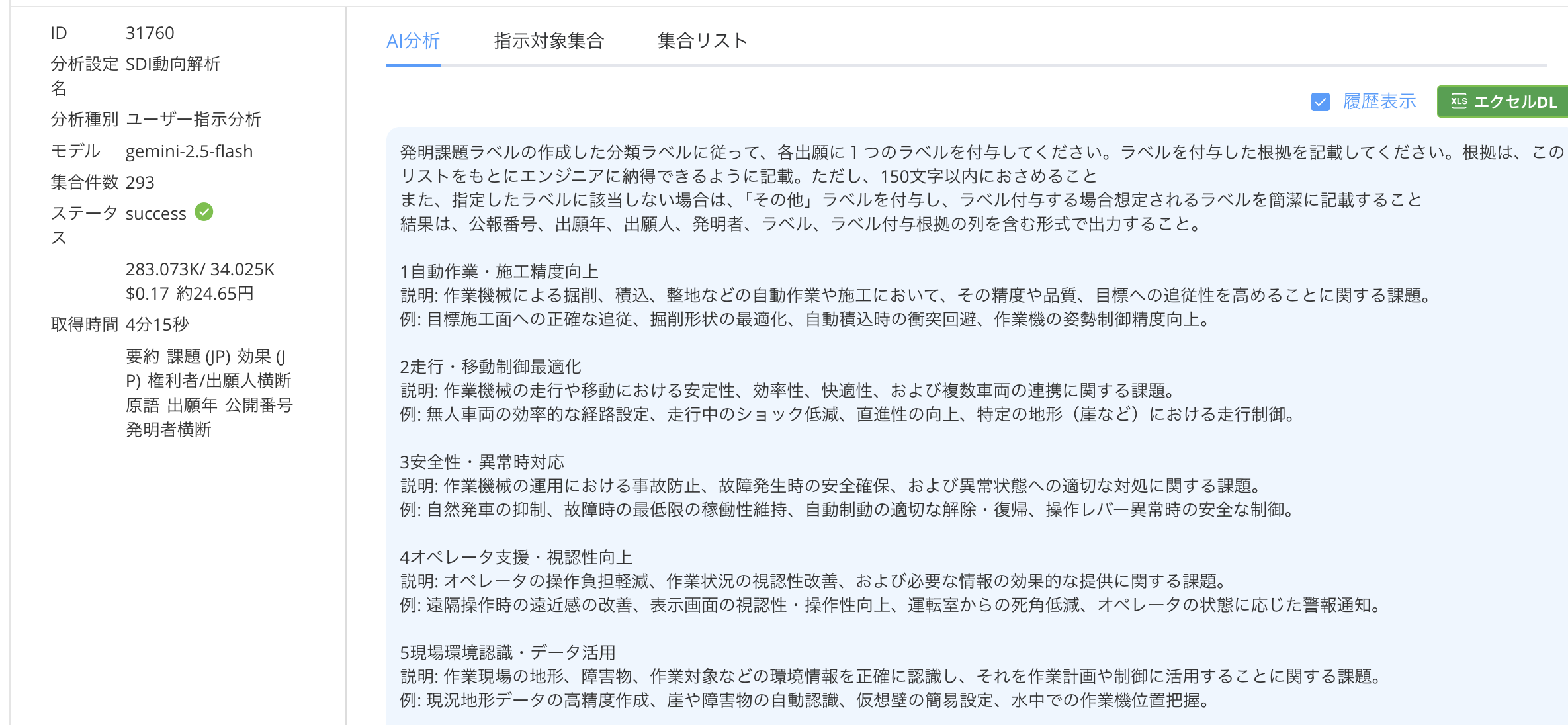 Patentfield AIRの「新規分析設定(β版)」を使用して、SDIで収集した出願について発明課題ラベルを付与して、付与したラベルのうち、特定の企業に関する動向解析の手法について紹介をします。
