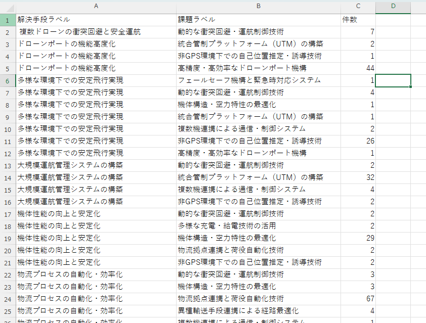 解決手段ラベル 課題ラベル 件数