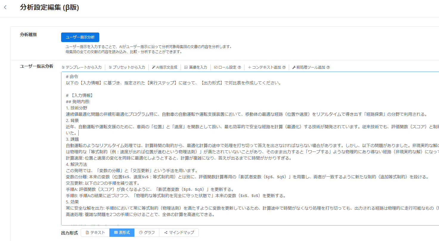 2. 与えられた【先行文献リスト】の各文献(先行文献1, 先行文献2, ...)を「列」とします。