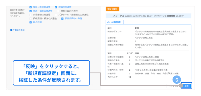 検証結果に問題がなければ、最後に⑥「反映」をクリックすることで、「新規査読設定」画面に戻ります。