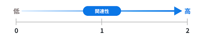 したがって、各評価軸のスコアは、2に近いほど、関連性が高く、合計スコアは、評価軸数×2の数値に近いほど、関連性が高いと評価されます。
