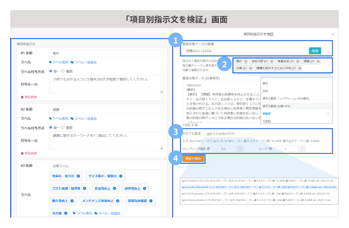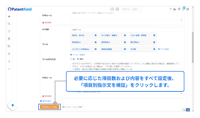 指示内容を入力後、「項目別指示文を検証」をクリックします。