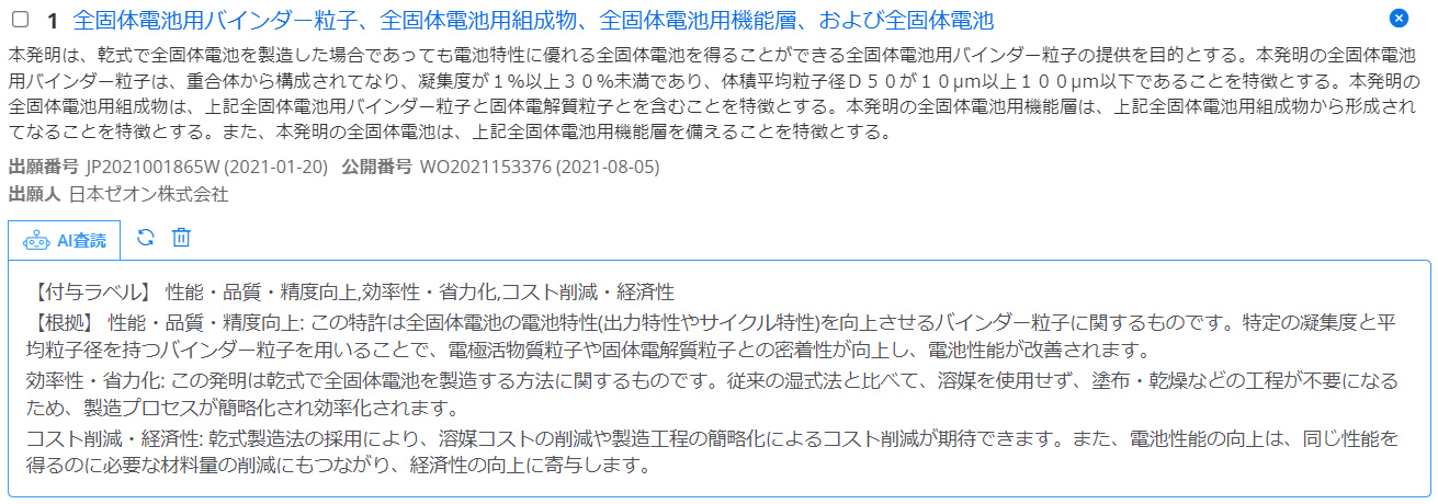 生成AIに大量の特許文献を査読してラベル付与させることで、大幅な時間とコストを削減することができます。