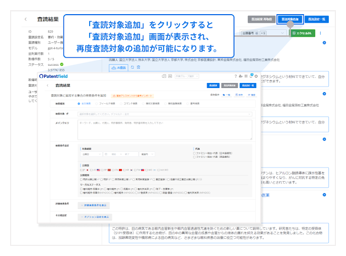 また、各公報タイトルの右側の「×」マークをクリックすると、査読対象から削除することが可能です。